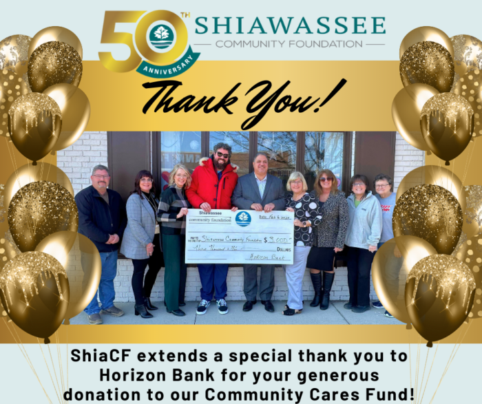 The Shiawassee Community Foundation is proud to announce a generous donation of $3,000 from Horizon Bank to support its Unrestricted-Community Cares Fund. This contribution underscores Horizon Bank’s steadfast commitment to the local communities it serves and reflects the Foundation’s mission of enriching lives in the Shiawassee County region through strong community relationships and responsible stewardship of funds. Horizon Bank is pleased to have a presence in several vibrant communities within Shiawassee County, and our continued partnership with ShiaCF provides a well-established means to support a wide range of community initiatives. As a community bank, supporting local missions is at the core of Horizon Bankβs beliefs.
